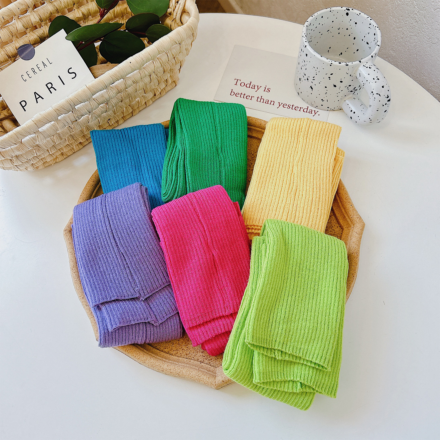 多巴胺色系~针织手套半指百搭保暖保暖毛线护臂少女袖套长款学生