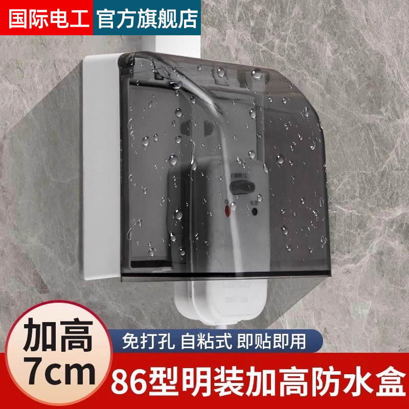 明装加高防水盒86型卫生间明线开关插座加长保护盖罩漏电插防溅盒