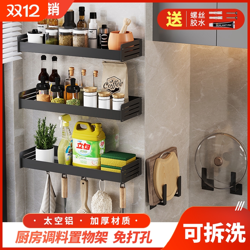 枪灰厨房置物架免打孔调味料架上墙壁挂式多功能调料品墙上收纳架