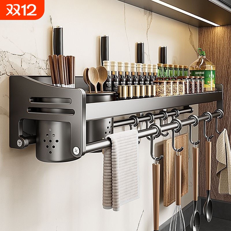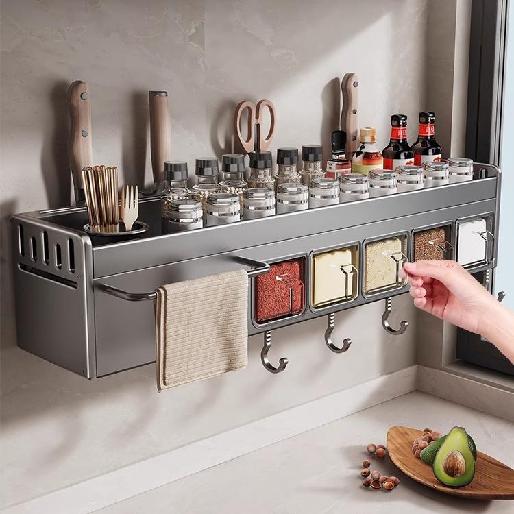 枪灰厨房置物架免打孔壁挂式刀架调味料用品大全家用多功能收纳架