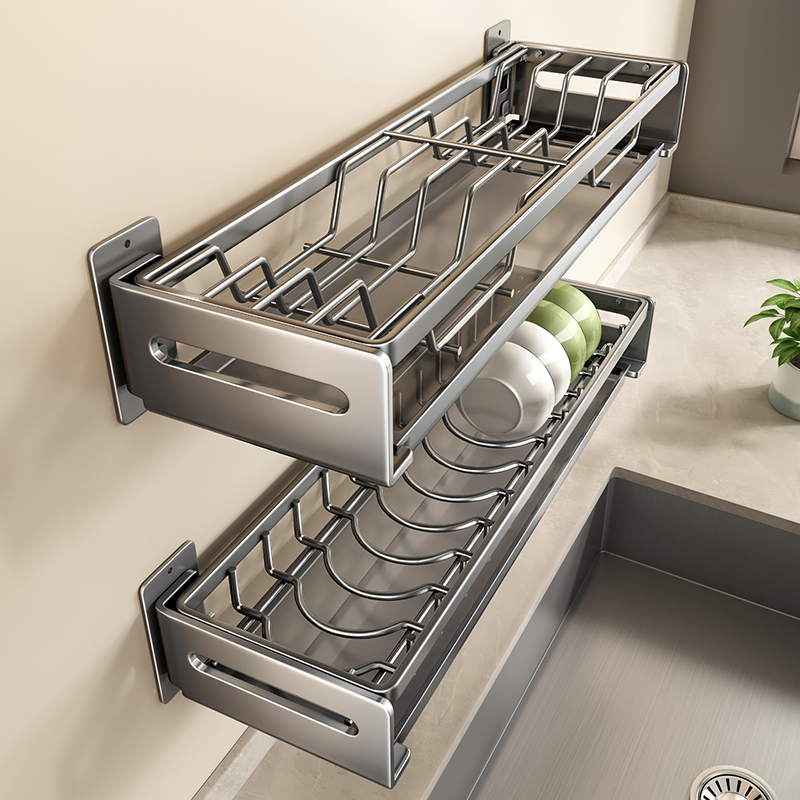 304不锈钢沥水碗碟架壁挂式厨房置物架免打孔晾放碗筷碗盘收纳架