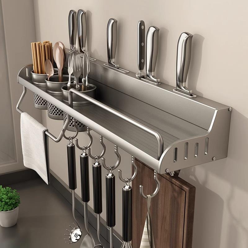 厨房置物架免打孔不锈钢壁挂式收纳架调味罐筷子筒刀架毛巾架承重