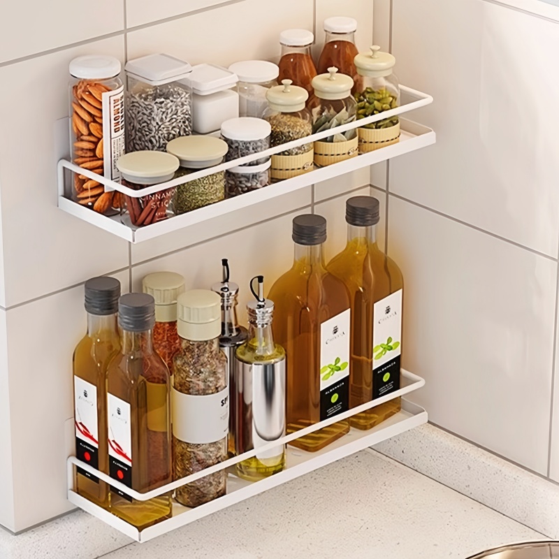 厨房置物架免打孔墙壁上调味收纳多功能储物家用白色壁挂调料架子