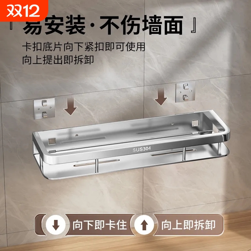 厨房置物架免打孔壁挂式调料品多功能墙上不锈钢收纳架子神器1286
