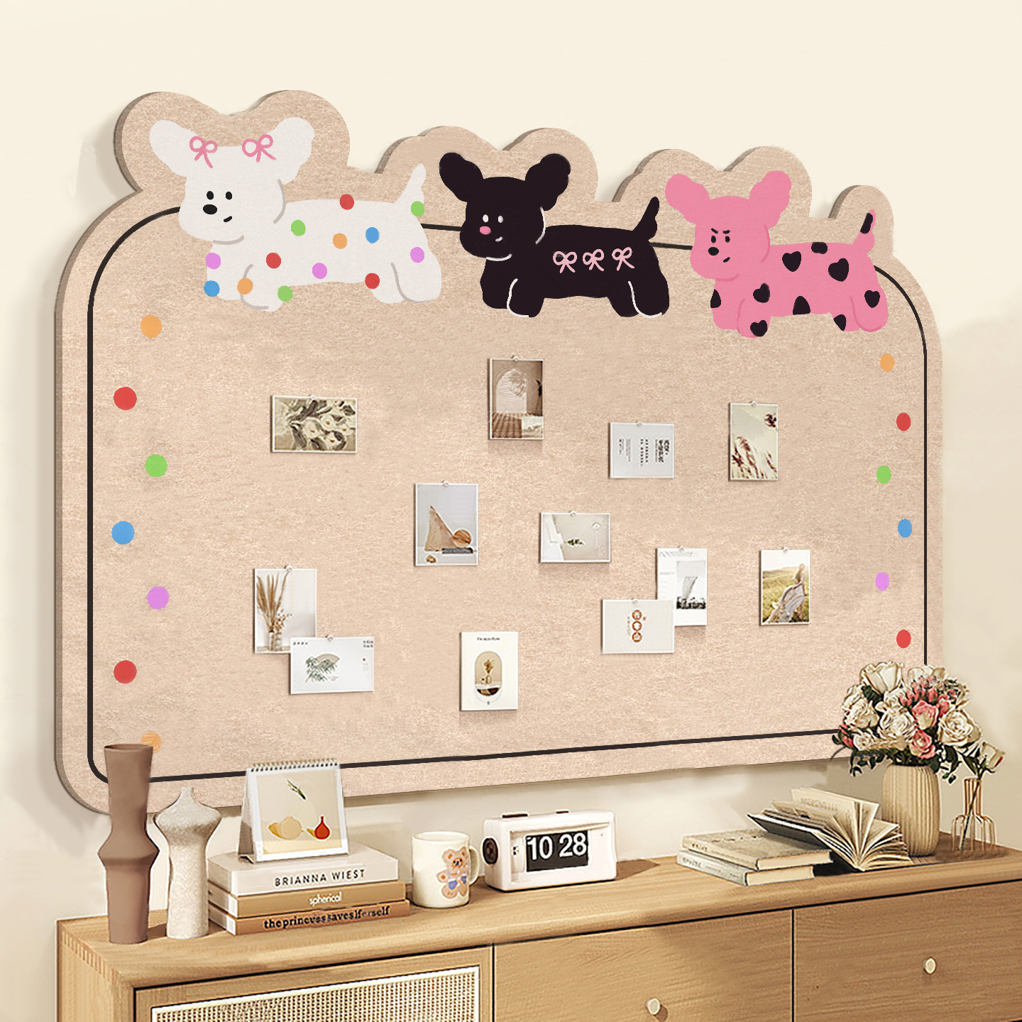可爱小熊毛毡板学生宿舍照片墙照片展示墙卡通首饰收纳板毛毡墙贴DIY装饰墙面儿童手绘作品展示板高级感客厅