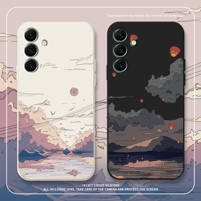 日落山丘适用三星s24手机壳s23+文艺一加ace3日系1+2por套一加8t高级感note20插画s10e小清新22ultranote10十