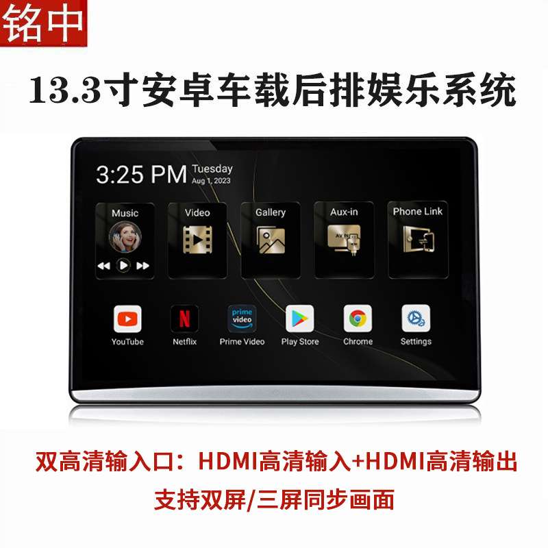 13.3寸汽车安卓后排娱乐系统高清8K车载外挂头枕显示屏双HDMI同屏