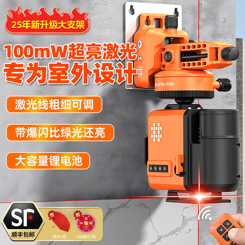 超强砌墙红光8线红外线水平仪12线绿光激光贴墙仪高精度室外打线