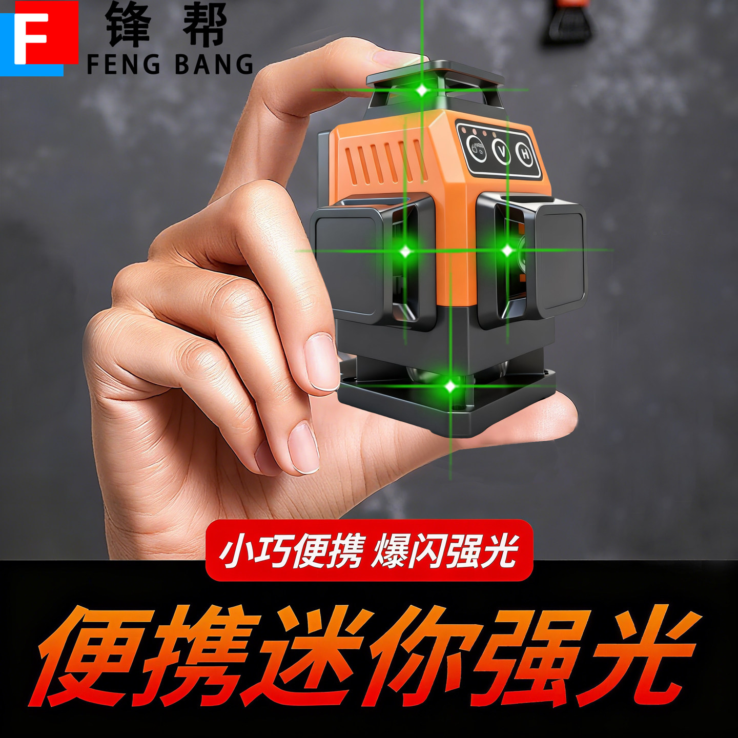 锋帮迷你水平仪12线绿光贴墙贴地激光红外线平水仪高精度强光细线