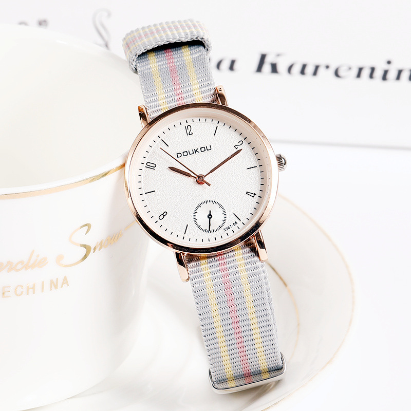 ins学院风小清新少女帆布带手表女中学生简约日系可爱软妹石英表