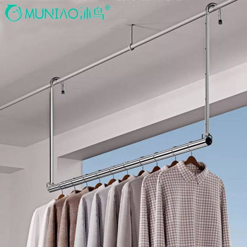 阳台伸缩晾衣杆晒被子神器304不锈钢侧装防盗网家用悬挂凉衣杆