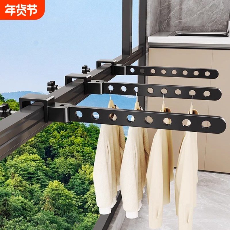 阳台晾衣神器防盗窗晾衣架窗户晾晒网护栏杆晒衣架窗外窗框凉衣杆