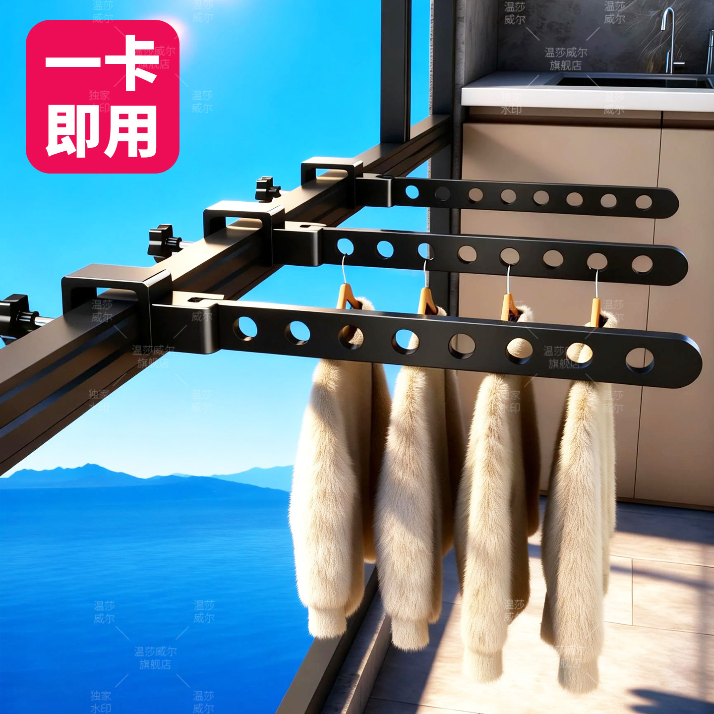 速发优盗台勤衣神器防晾窗晾衣架窗户晾晒网护栏杆晒衣架窗外凉衣