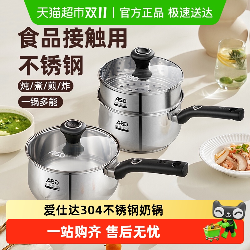 爱仕达奶锅304不锈钢家用奶锅婴儿宝宝辅食锅燃气灶电磁炉适用