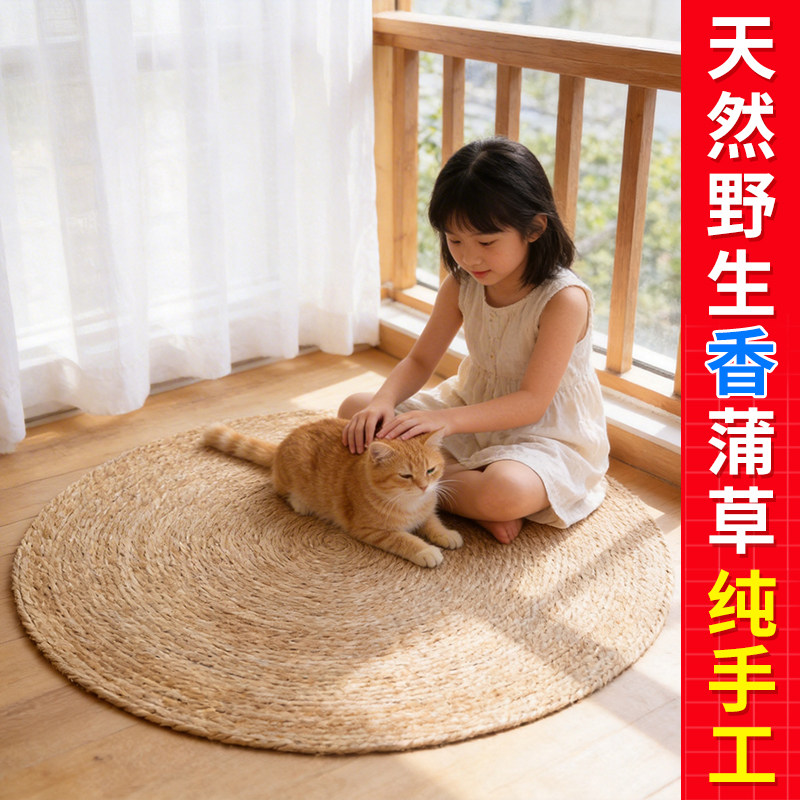 【天然草编地垫】可水洗蒲草地毯圆形客厅沙发床边脚垫松弛感垫子