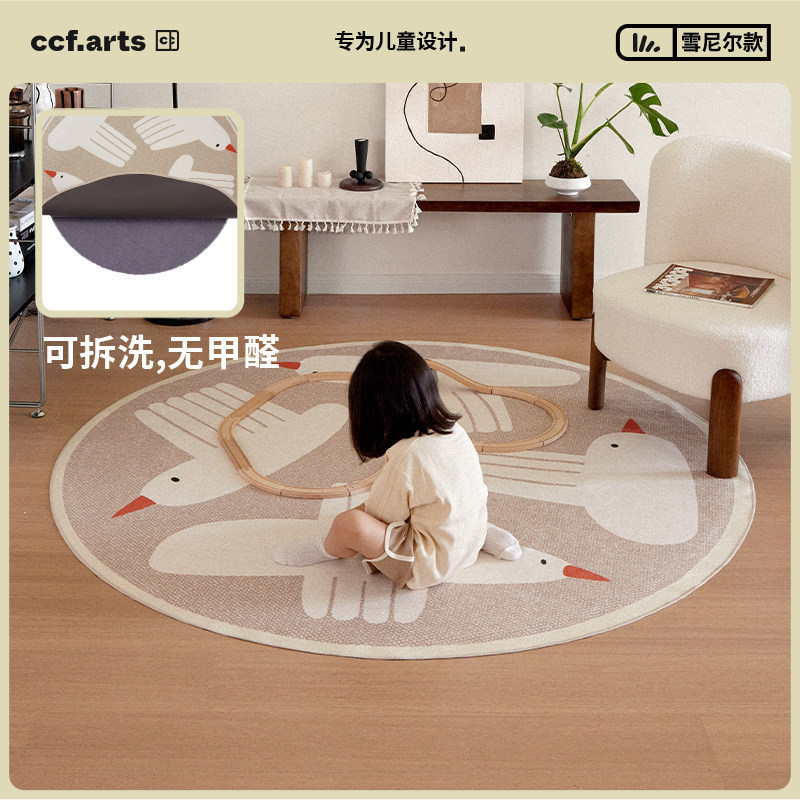 CCF 梳子鸟可拆洗无甲醛地毯圆形毯儿童房可机洗卧室宝宝地垫玩耍