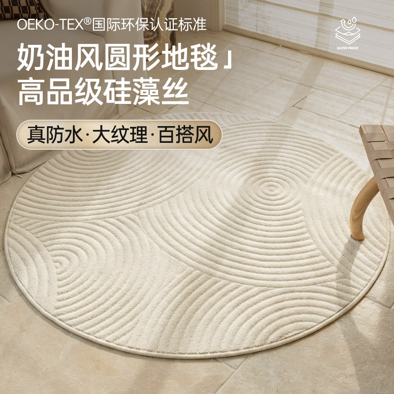 圆形客厅地毯高级感耐脏防滑免洗可擦地垫奶油风卧室免打理床边毯