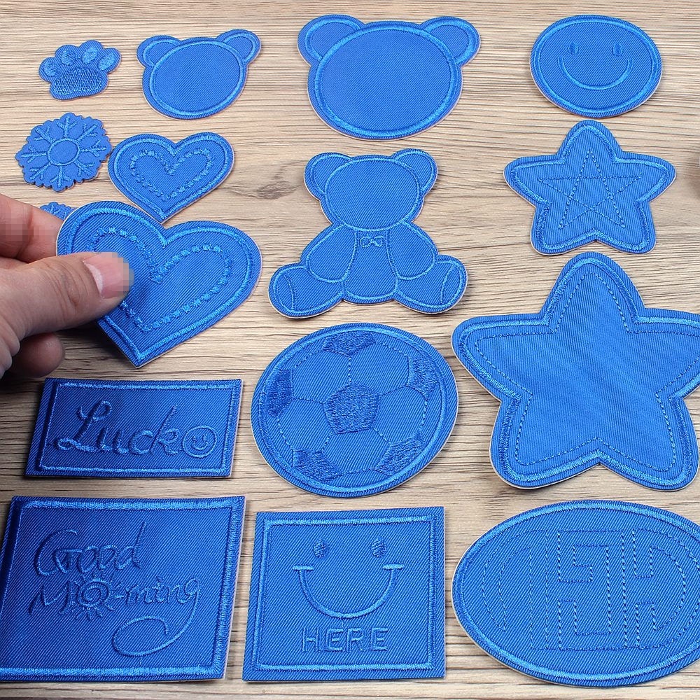 蓝色校服刺绣补丁贴羽绒服衣服裤子破洞修补布艺沙发无痕装饰贴布