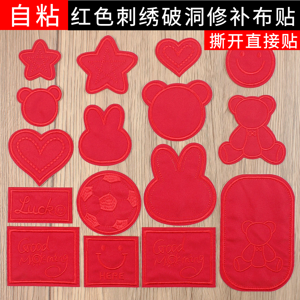 红色布艺沙发贴补破洞自粘刺绣贴布羽绒服修补贴冲锋衣校服补丁贴