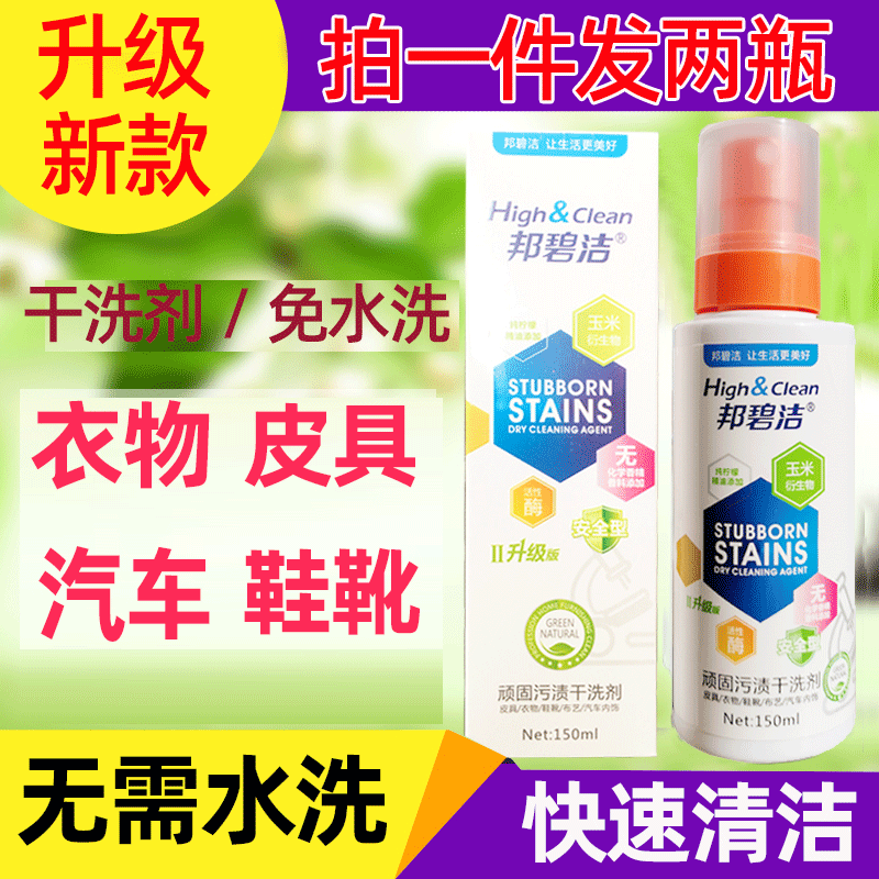 邦碧洁顽固污渍干洗剂羽绒服布艺沙发清洁免水洗小白鞋皮具清洗剂