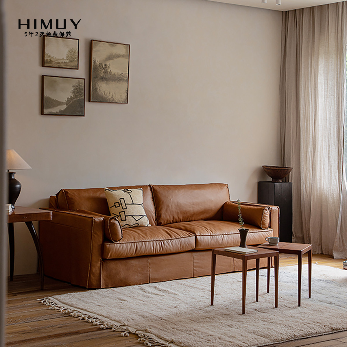 HIMUY 余晖沙发复古侘寂风油蜡全真皮头层皮羽绒沙发布艺客厅三位