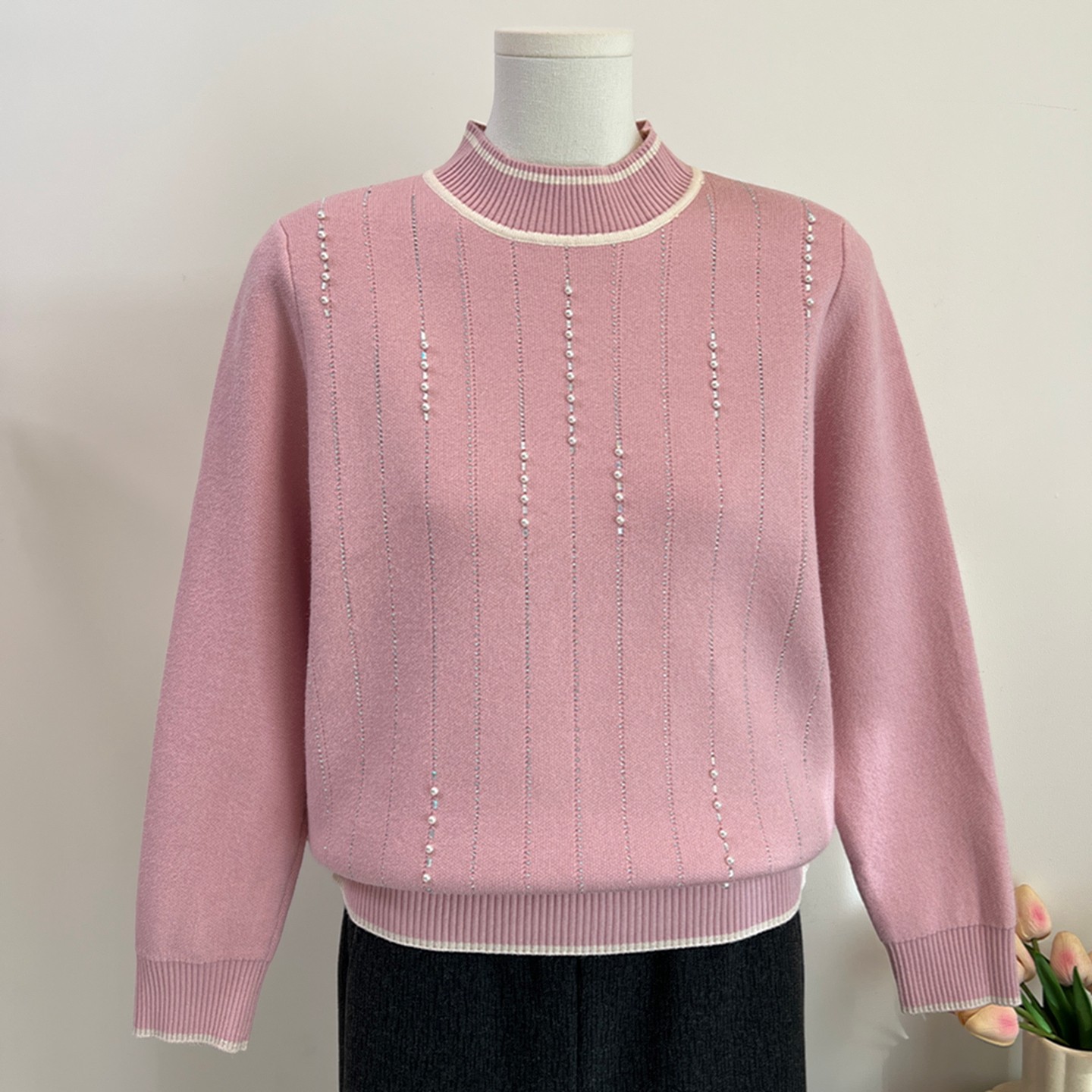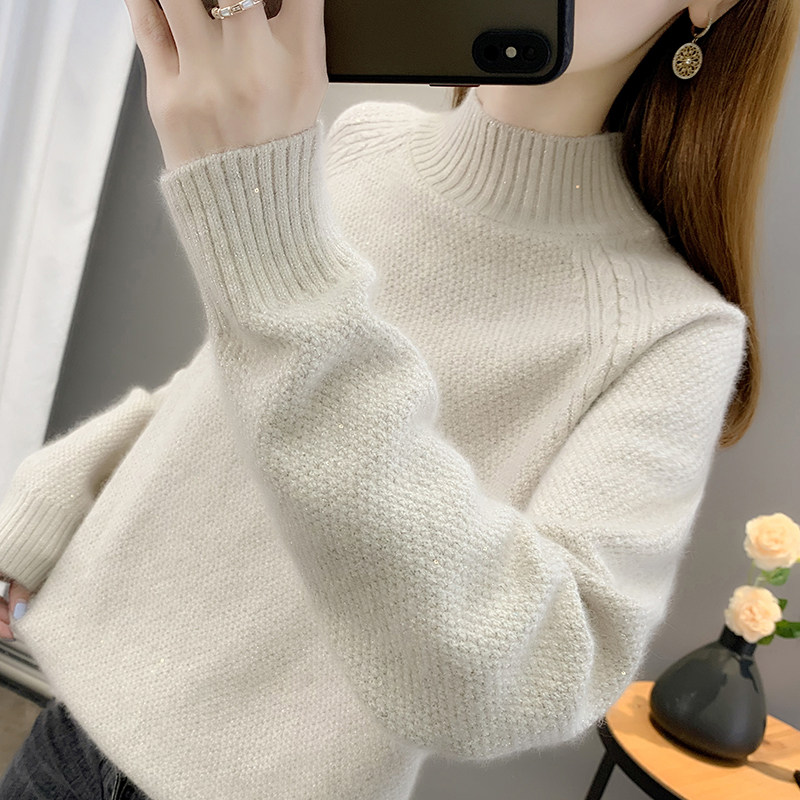 2025年秋冬新款女装半高领毛衣女宽松亮片内搭洋气针织打底衫加厚