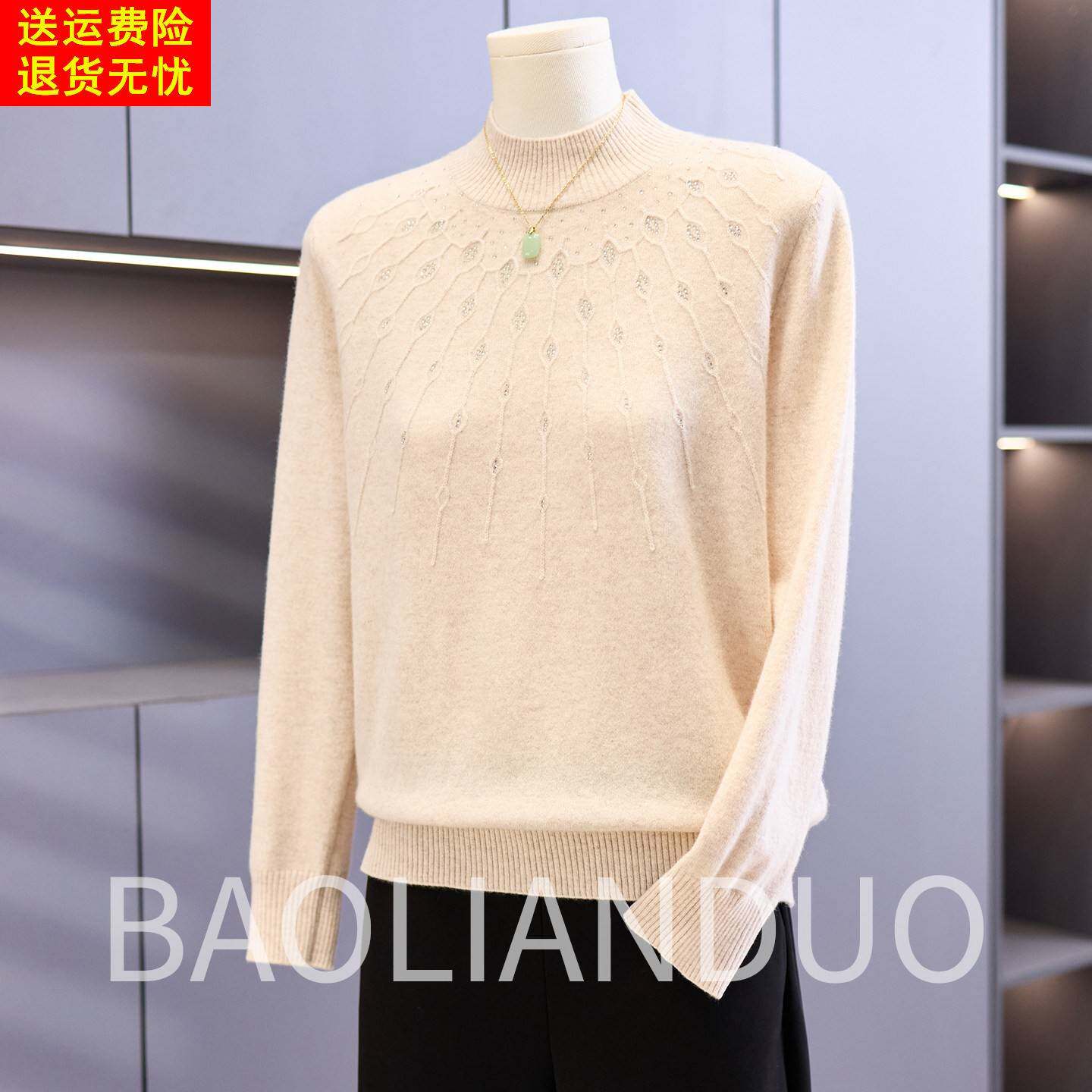 洋气妈妈冬装100%纯羊毛衫中年女装半高领毛衣中老年打底上衣内搭