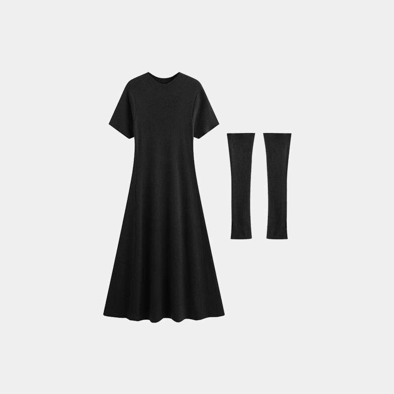 大码女装半高领毛衣裙女袖套连衣裙2025冬款胖mm百搭针织裙23669