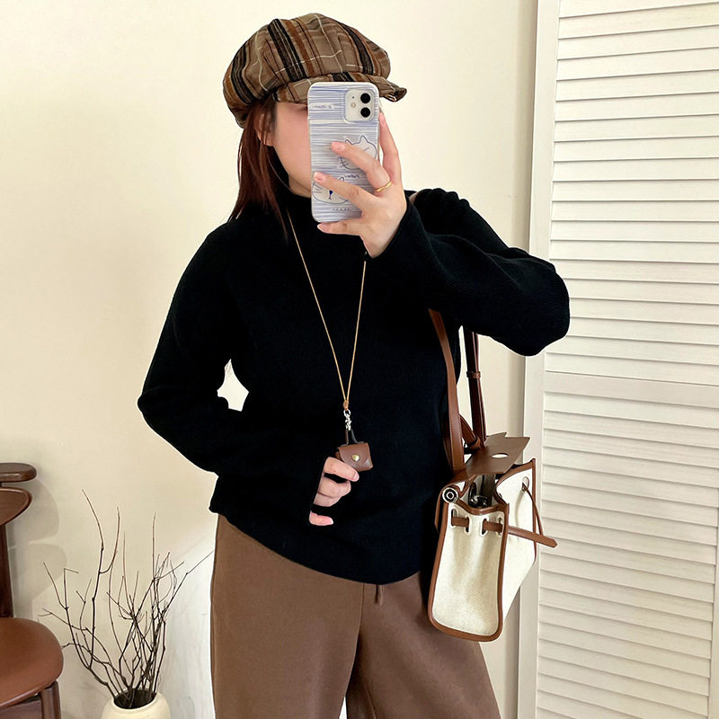 2025年新女装半高领毛衣秋冬外穿宽松内搭短款针织打底衫加厚保暖