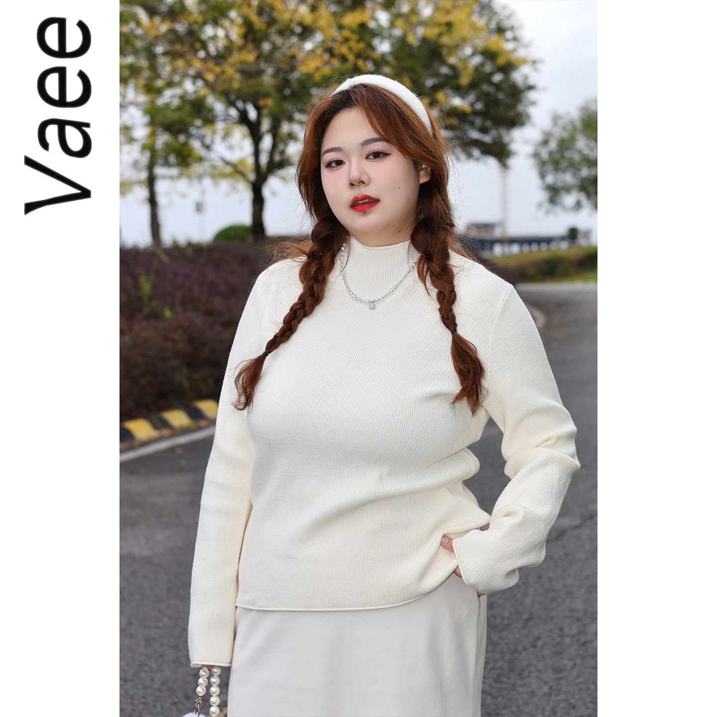 Vaee大码女装半高领毛衣秋冬新款气质内搭上衣纯色修身针织打底衫