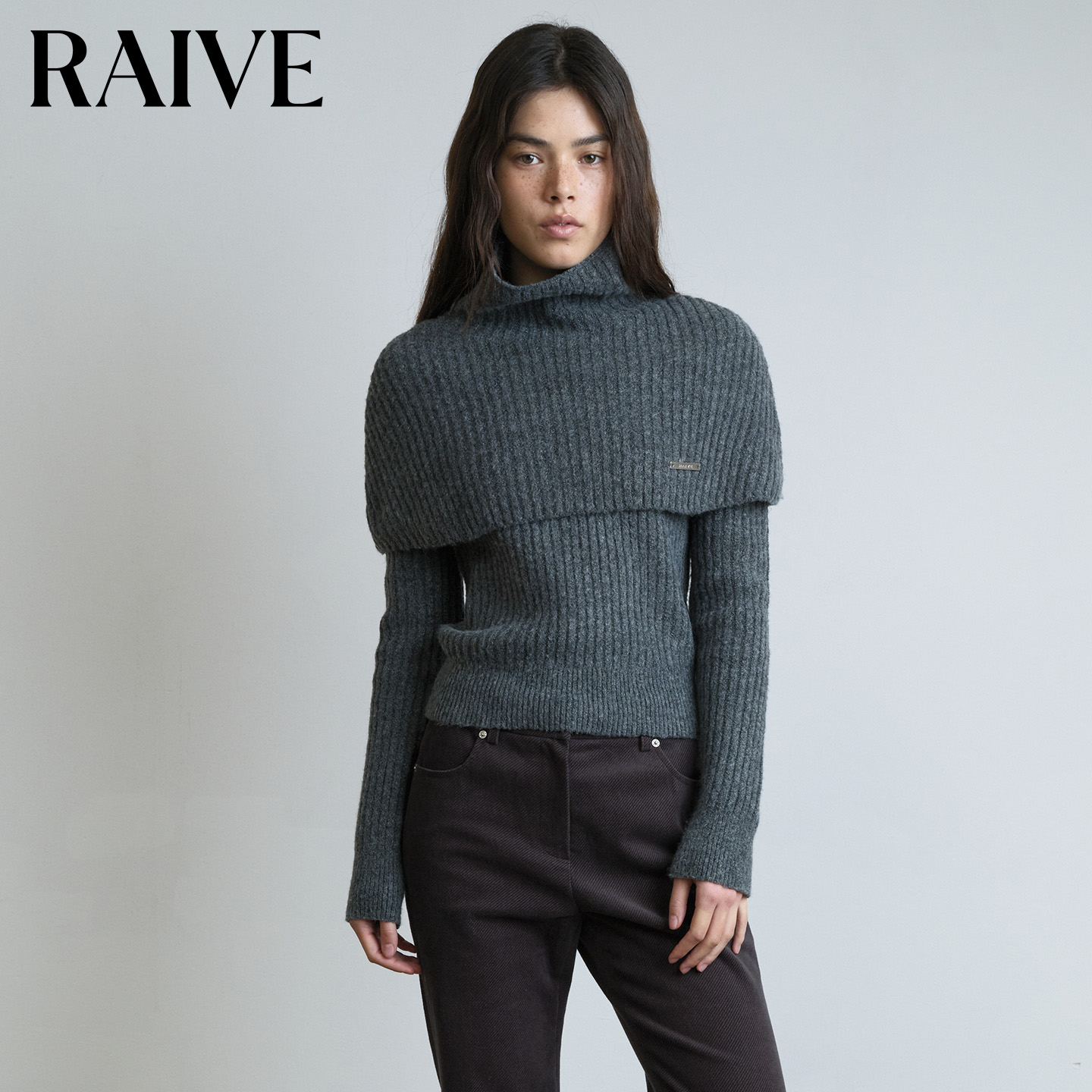 RAIVE2025冬季新款女上衣内搭披肩设计两件套高领纯色毛针织衫