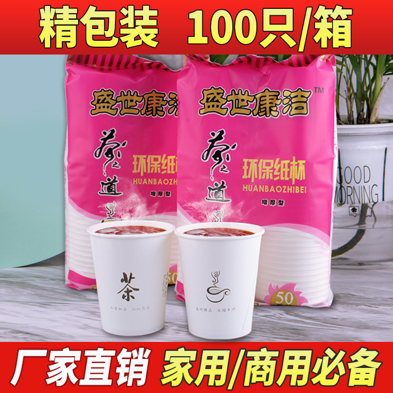 一次性纸杯批发包邮 加厚家用商务冷热杯办公茶水杯100只纸杯子
