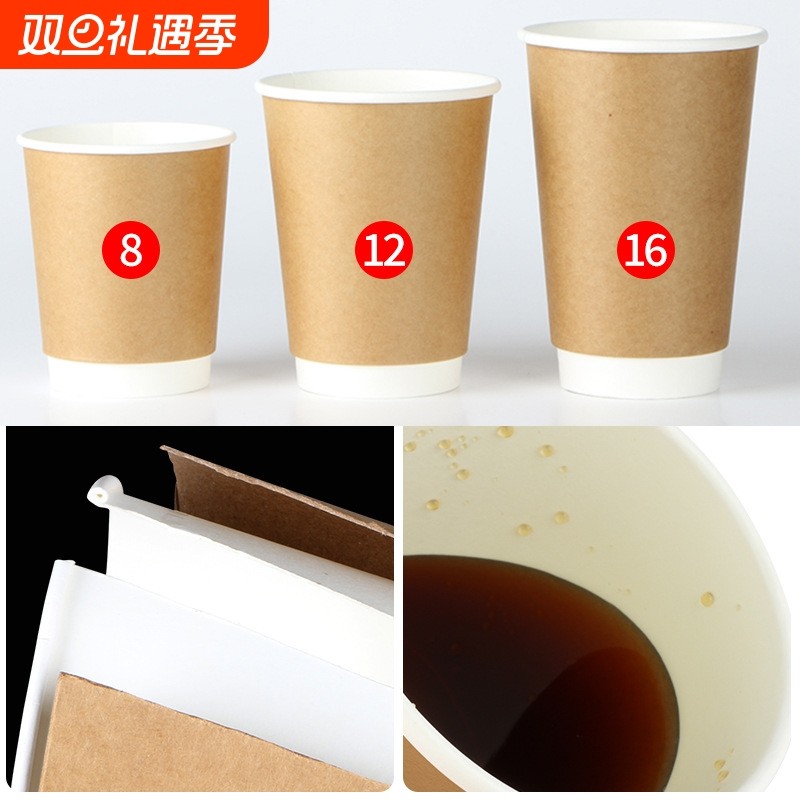 一次性纸杯批发奶茶豆浆热饮杯商用可乐水杯带盖中空隔热牛皮纸杯