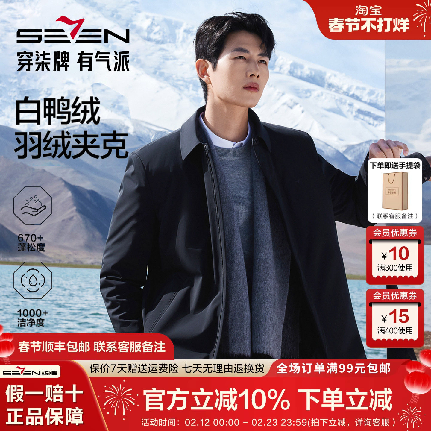 【黄金鲜绒】柒牌翻领羽绒服2026春季休闲白鸭绒商务行政夹克外套
