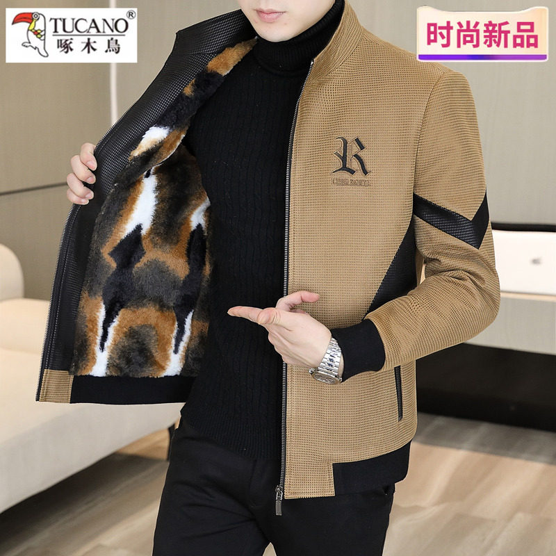 啄木鸟男士鹿皮绒夹克秋冬季休闲百搭加绒加厚中老年羊羔绒外套男