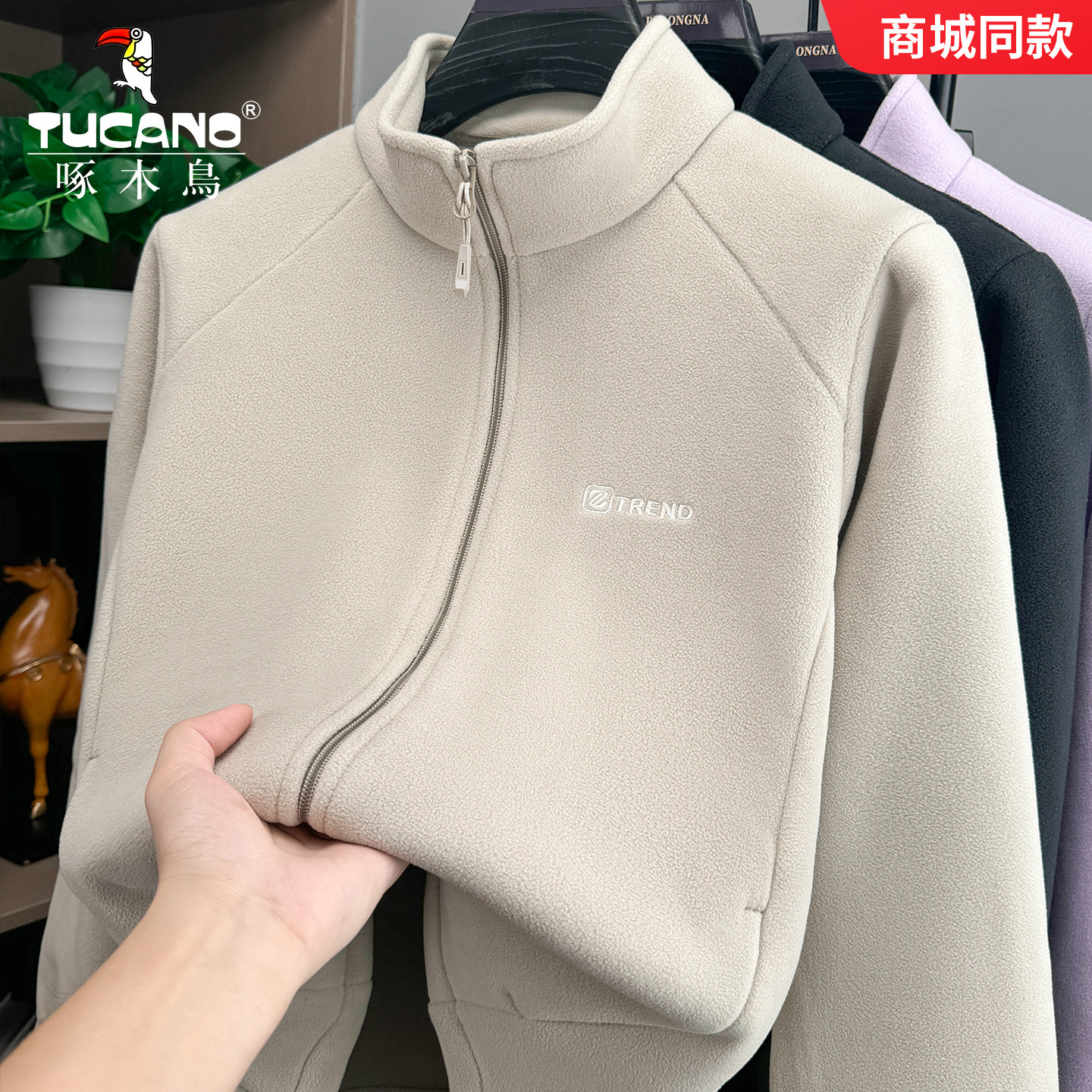 啄木鸟摇粒绒外套刺绣休闲男士卫衣夹克秋冬季女士拉链抓绒衣1802