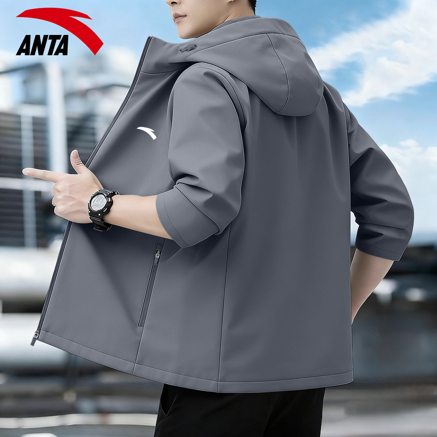 安踏加绒外套男外穿防泼水品牌爸爸男装灰色休闲运动行政夹克上衣