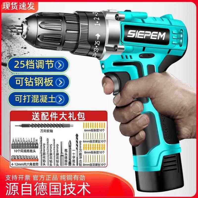 手电钻冲击钻家用锂电池打孔工具套装多功能小型充电式电动螺丝刀