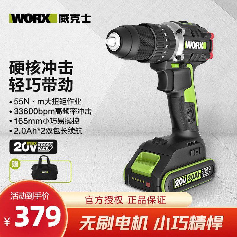 威克士WU369无刷冲击钻 家用充电手电钻电起子电转电动拧螺丝批头