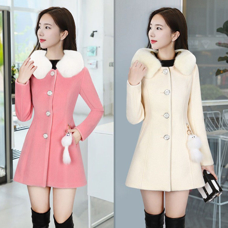 风衣外套女毛呢秋冬新款小个子加厚韩版修身气质中长款呢子大衣潮