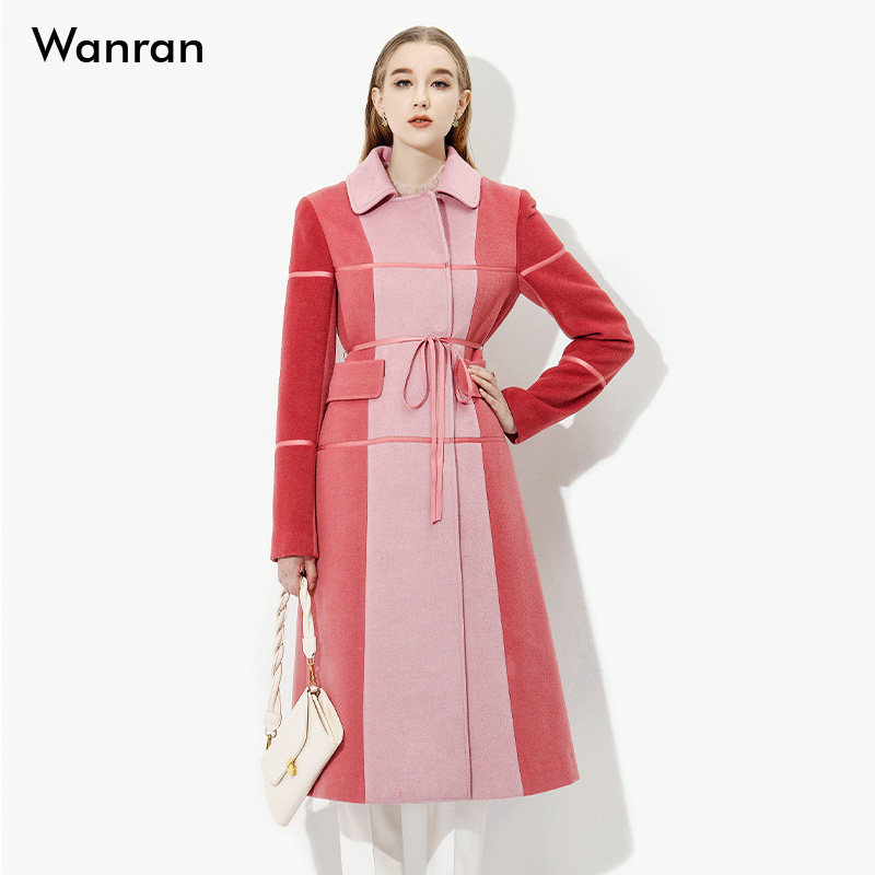 复古拼色修身呢子大衣加厚中长款羊毛呢外套秋季女装2025新款