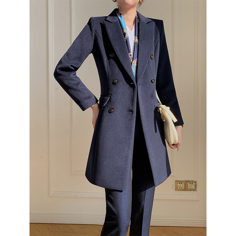 羊毛职业毛呢大衣女冬加厚修身收腰中长款商务通勤职业装呢子西装