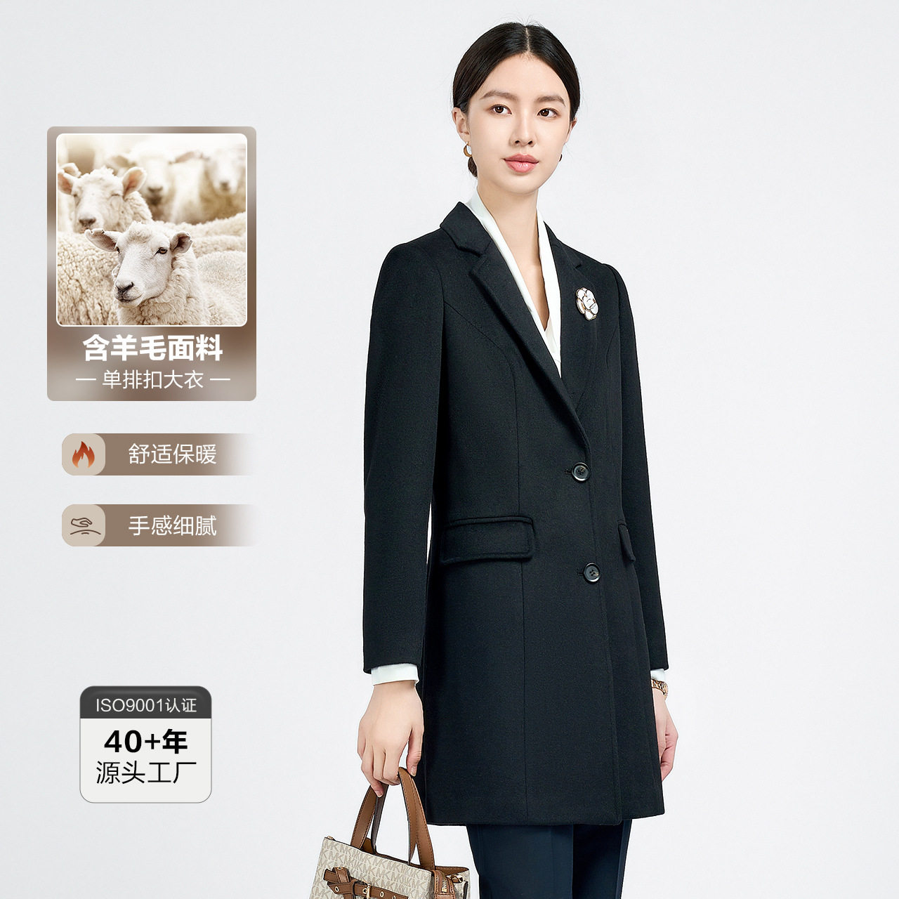 毛呢外套女中长款2025新款加厚春秋冬工作服黑色修身职业呢子大衣