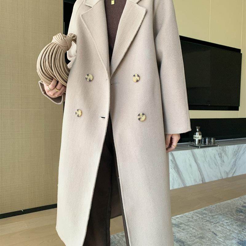 2024秋冬新款高端加厚羊绒大衣女中长款双排扣修身纯羊毛呢子外套