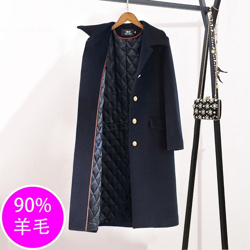 职业装秋冬新款羊毛呢大衣女中长款长袖修身加厚呢子外套韩国夹棉