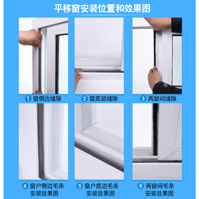 窗户密封条推拉门窗铝合金塑钢窗玻璃门缝隙防风防尘自粘毛条衣柜