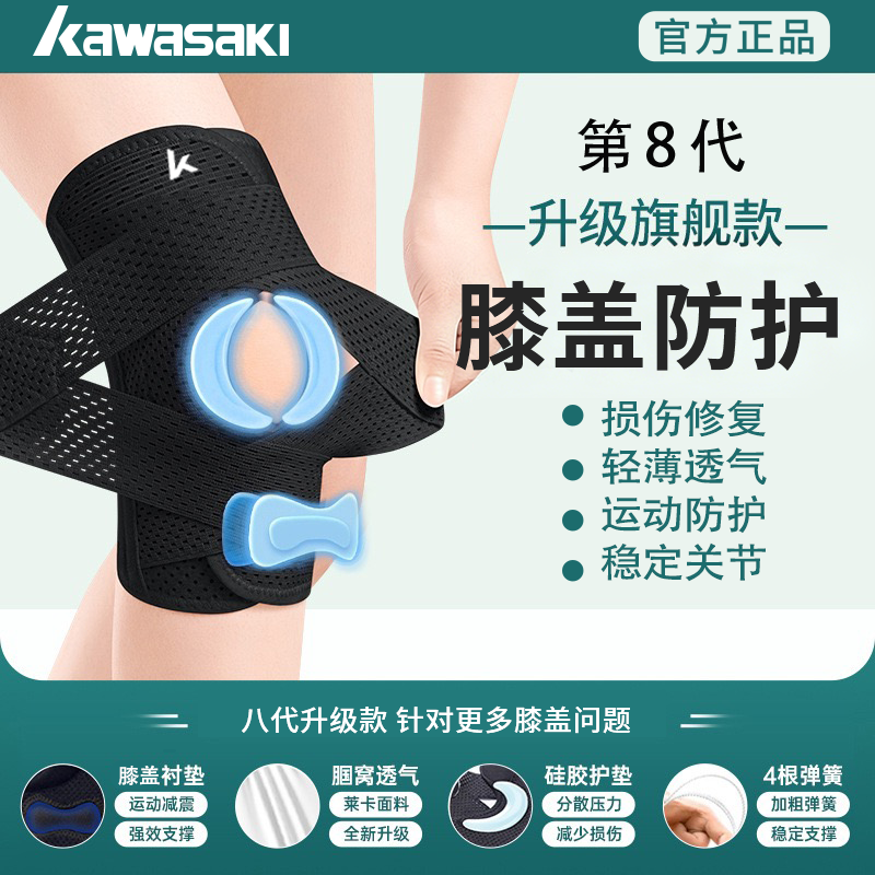 川崎运动专用护膝羽毛球跳绳户外登山护膝盖专业护具装备男女同款