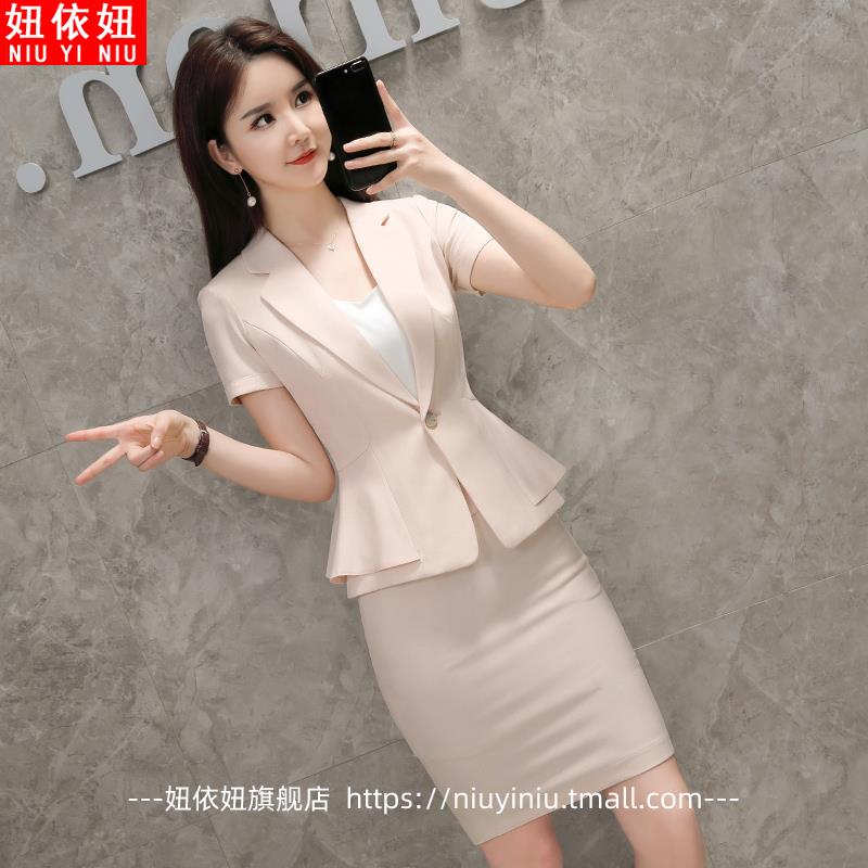 时尚职业套装女夏季气质女神范名媛西装套裙短袖美容师前台工作服