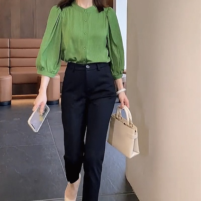 OL风时尚职业套装女夏季新款气质宽松中袖衬衣+高腰九分裤两件套