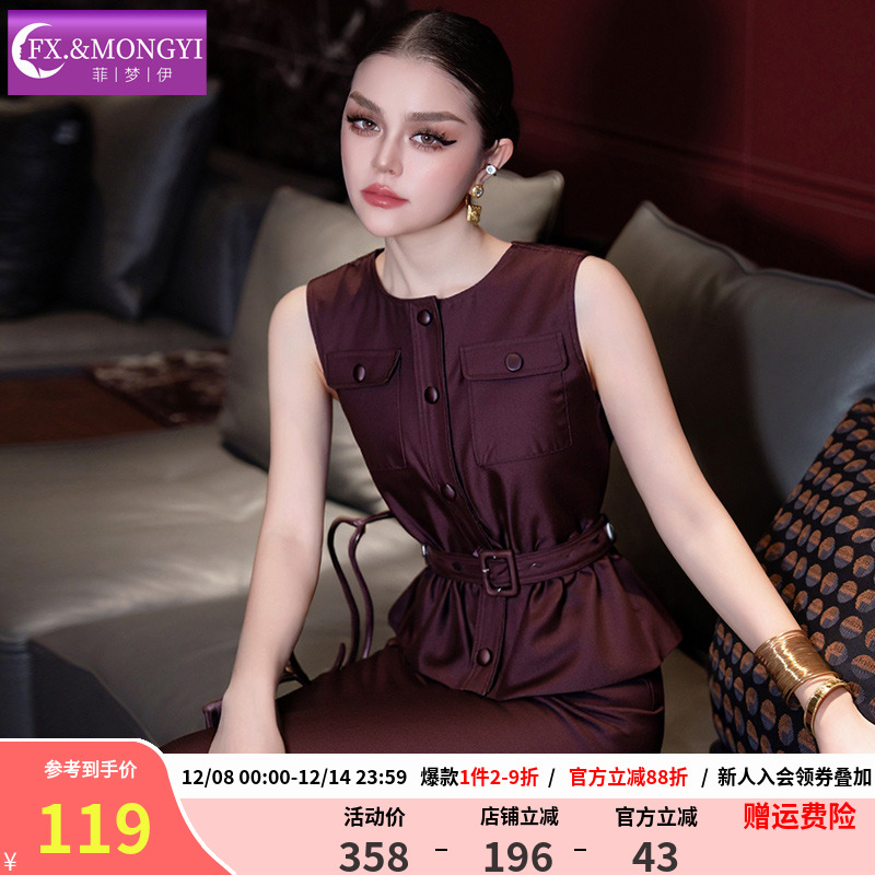 菲梦伊高端轻奢时尚套装女秋季荷叶边收腰名媛上衣职业半裙两件套